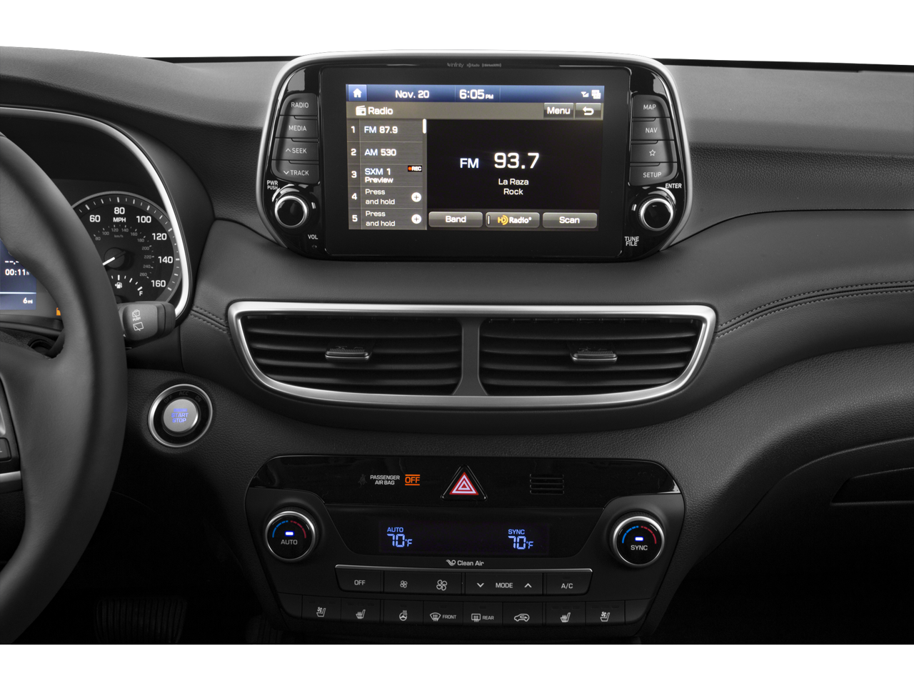 - Radio: Infinity Audio System w/Navigation -inc: 315-Watt, 8" color touchscreen, Apple CarPlay, Android Auto, 8 speakers, USB/AUX input jack, Bluetooth® hands-free phone system, SiriusXM satellite radio, HD Radio, VR, Blue Link connected car system, Clari-Fi music restoration technology, external amplifier and wireless device charging