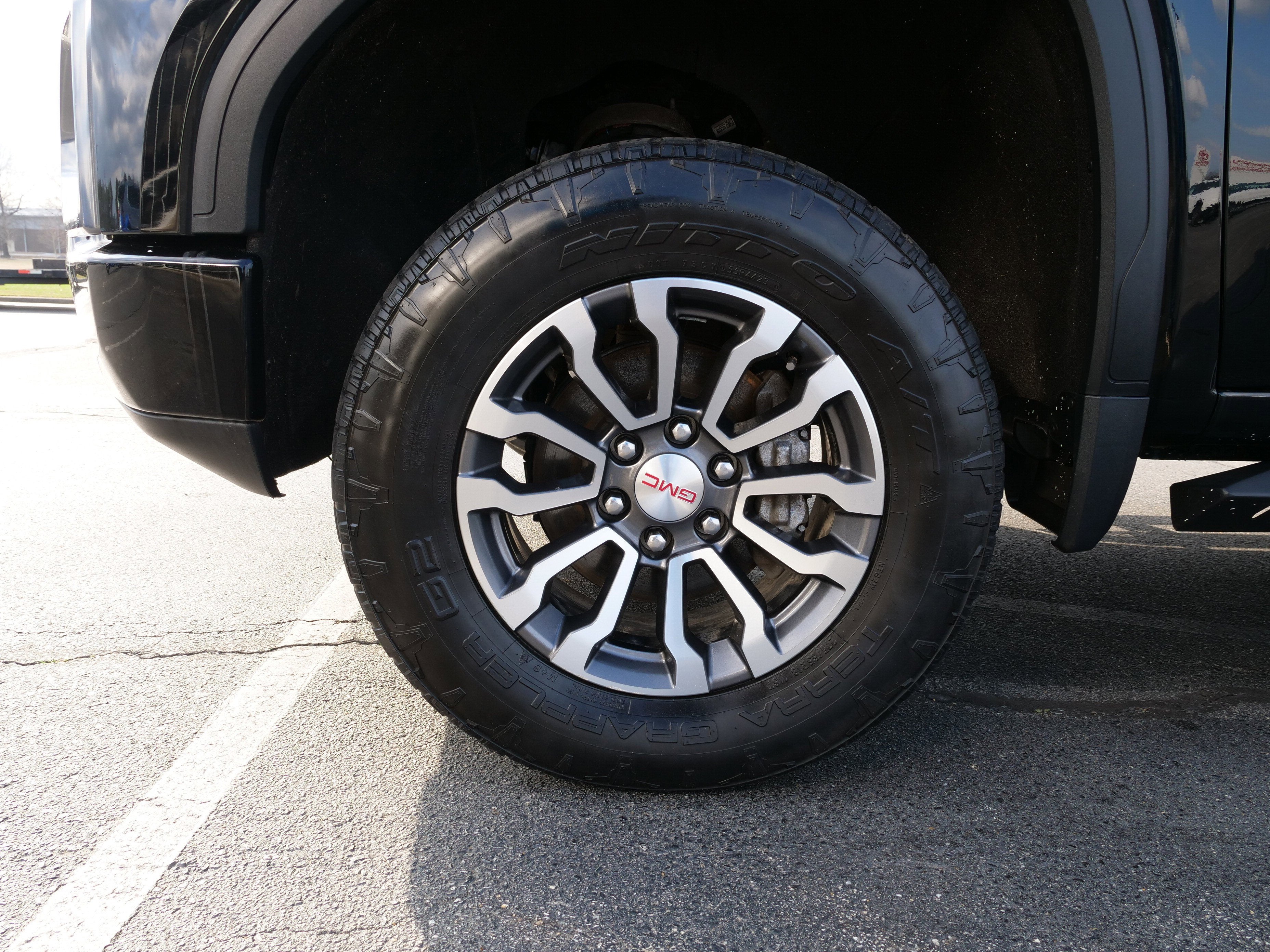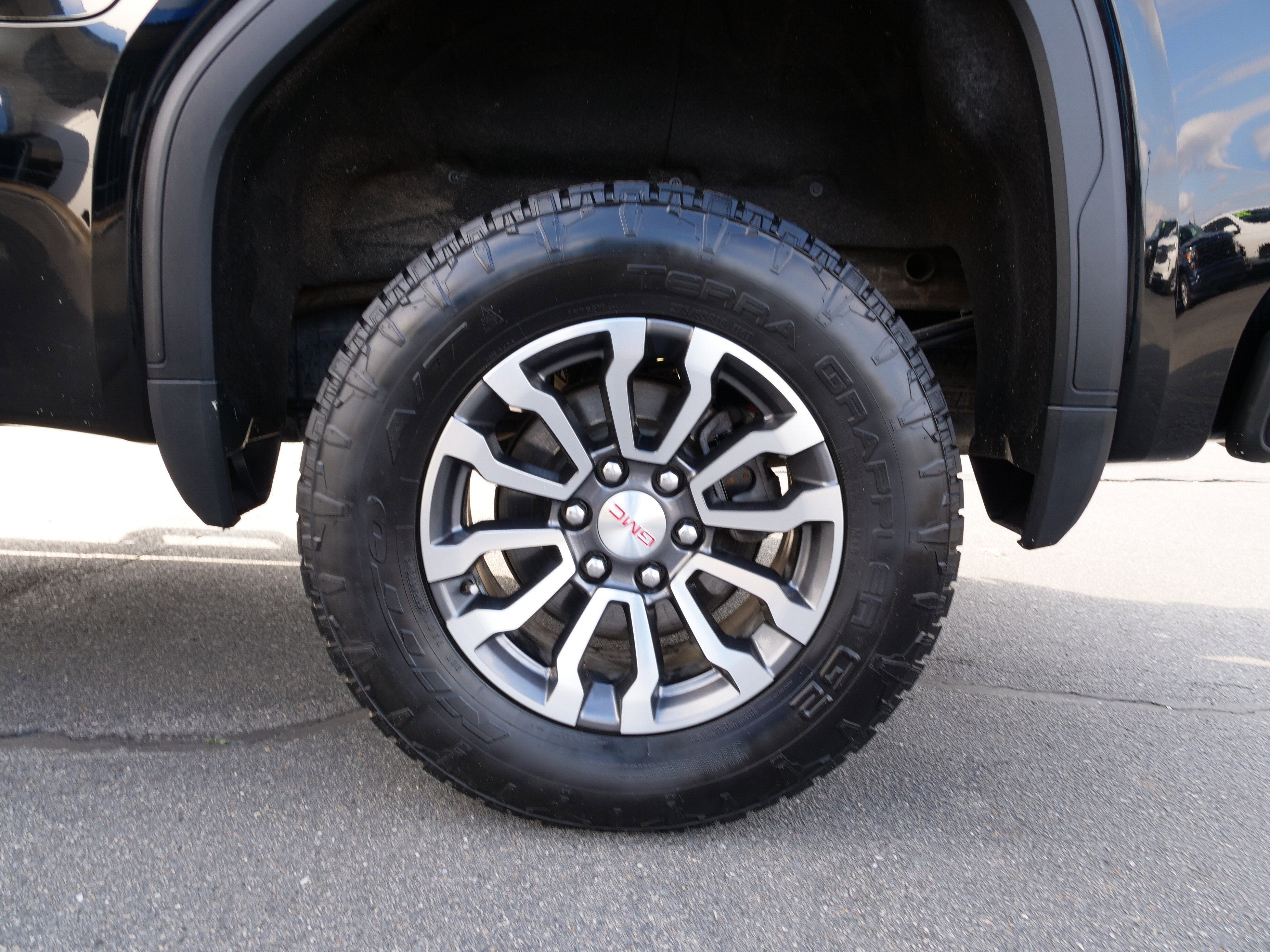 Onyx Black 2021 GMC Sierra 1500 AT4 4WD 10-Speed Automatic EcoTec3 5.3L V8 AT4 Preferred Package (Power Sliding Rear Window w/Rear Defogger, Premium Bose 7-Speaker Sound System, Radio: Premium GMC Infotainment Sys w/Navigation, SiriusXM w/360L, Universal Home Remote, and Wireless Charging), Preferred Equipment Group 4SB (12-Volt Rear Auxiliary Power Outlet, 120-Volt Bed Mounted Power Outlet, 120-Volt Instrument Panel Power Outlet, 170 Amp Alternator, 2 USB Ports, 2 USB Ports (1st Row), 4.2 Diagonal Color Display Driver Info Center, 4G LTE Wi-Fi Hotspot Capable, Auto-Locking Rear Differential, Auxiliary External Transmission Oil Cooler, Body-Color Surround Grille, Color-Keyed Carpeting Floor Covering, Compass, Deep-Tinted Glass, Electric Rear-Window Defogger, Electrical Lock Control Steering Column, Floor-Mounted Center Console, Front Prem Floor Liners w/Removable Carpet Insert, GMC Connected Access Capable, HD Rear Vision Camera, Heated Driver & Front Outboard Passenger Seating, Heavy-Duty Air Filter, Hill Descent Control, Hitch Guidance w/Hitch View, In-Vehicle Trailering App, Integrated Trailer Brake Controller, Keyless Open & Start, LED Cargo Area Lighting, Manual Tilt-Wheel & Telescoping Steering Column, OnStar & GMC Connected Services Capable, Power Door Locks, Power Front Passenger Windows w/Express Up/Down, Power Front Windows w/Driver Express Up/Down, Power Rear Windows w/Express Down, ProGrade Trailering System, Rear Dual USB Charging-Only Ports, Rear Prem Floor Liners w/Removable Carpet Insert, Rear Wheelhouse Liners, Red Recovery Hooks, Remote Vehicle Starter System, Spray-On Pickup Bed Liner w/AT4 Logo, Steering Wheel Audio Controls, Theft Deterrent System (Unauthorized Entry), and Ventilated Driver & Front Passenger Seats), Trailering Package (Hitch Guidance), 10-Speed Automatic, 4WD, Jet Black With Kalahari Accents Leather, 10-Way Power Driver Seat Adjuster w/Lumbar, 10-Way Power Passenger Seat Adjuster w/Lumbar, 18 x 8.5 Machined Aluminum Wheels, 3.23 Rear Axle Ratio, 4-Wheel Disc Brakes, 6 Speakers, 6-Speaker Audio System Feature, ABS brakes, Air Conditioning, Alloy wheels, AM/FM radio: SiriusXM with 360L, Apple CarPlay/Android Auto, Auto-dimming door mirrors, Auto-dimming Rear-View mirror, Automatic temperature control, Brake assist, Bumpers: body-color, Delay-off headlights, Driver door bin, Driver Memory, Driver vanity mirror, Dual front impact airbags, Dual front side impact airbags, Electronic Stability Control, Front anti-roll bar, Front Bucket Seats, Front Center Armrest, Front dual zone A/C, Front fog lights, Front reading lights, Front wheel independent suspension, Fully automatic headlights, Heated 2nd Row Outboard Seats, Heated door mirrors, Heated front seats, Heated steering wheel, Illuminated entry, Low tire pressure warning, Memory seat, Not Equipped w/Automatic Stop/Start, Occupant sensing airbag, Off-Road Suspension, Outside temperature display, Overhead airbag, Overhead console, Panic alarm, Passenger door bin, Passenger vanity mirror, Perforated Leather-Appointed Front Seat Trim, Power door mirrors, Power driver seat, Power passenger seat, Power steering, Power windows, Premium audio system: GMC Infotainment System, Radio data system, Radio: Premium GMC Infotainment Sys w/Multi-Touch, Rear reading lights, Rear seat center armrest, Rear step bumper, Rear window defroster, Remote keyless entry, Security system, Speed control, Speed-sensing steering, Split folding rear seat, Steering wheel mounted audio controls, Tachometer, Telescoping steering wheel, Tilt steering wheel, Traction control, Trip computer, Variably intermittent wipers, Ventilated front seats, and Voltmeter.