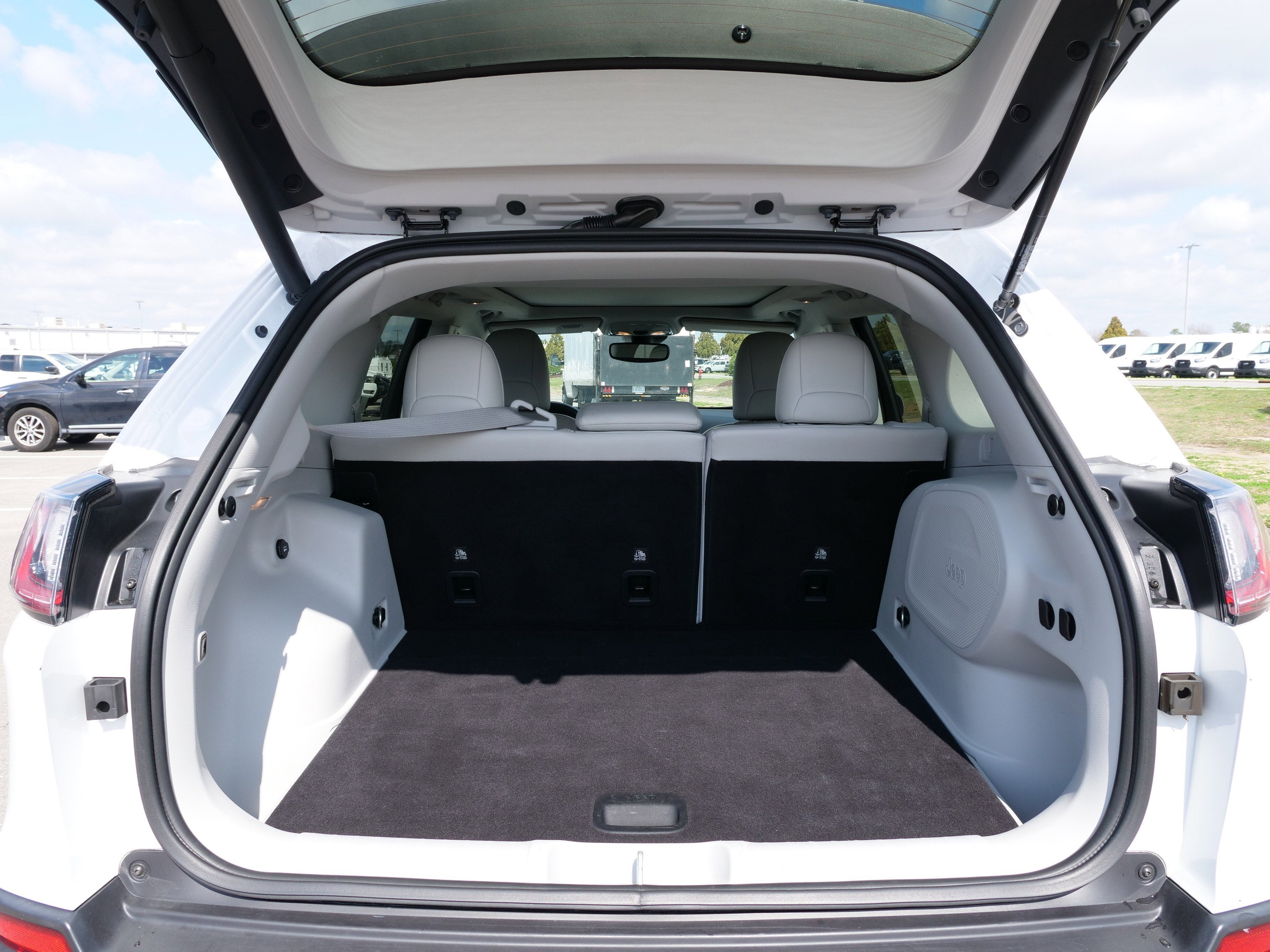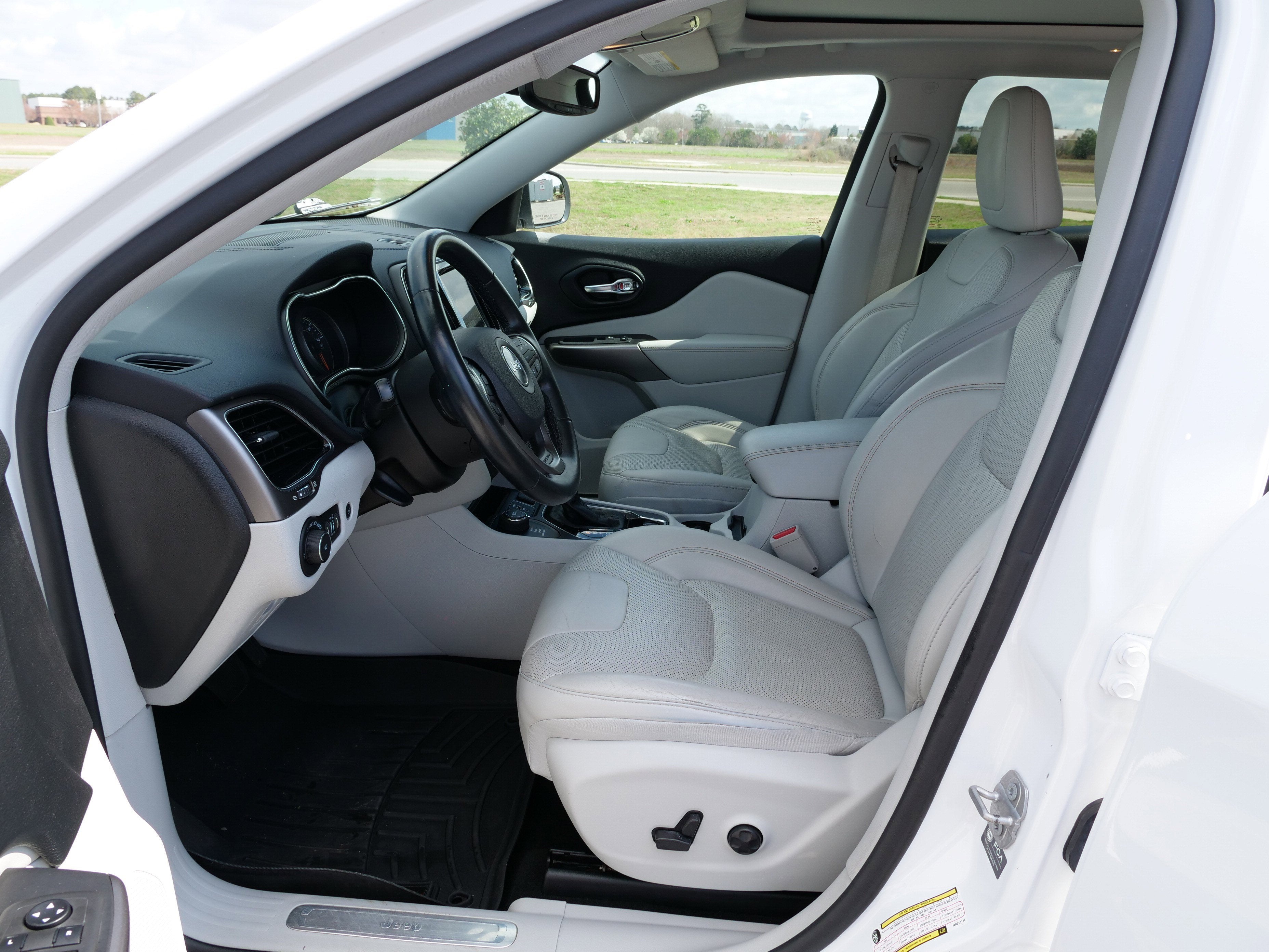 Bright White Clearcoat 2021 Jeep Cherokee Limited Quick Order Package 26G, 10 Speakers, 3.251 Axle Ratio, 4-Wheel Disc Brakes, ABS brakes, Air Conditioning, Alloy wheels, AM/FM radio: SiriusXM, Anti-whiplash front head restraints, Apple CarPlay/Android Auto, Audio memory, Auto High-beam Headlights, Auto-dimming Rear-View mirror, Automatic temperature control, AutoStick Automatic Transmission, Auxiliary Transmission Oil Cooler, Brake assist, Bumpers: body-color, Compass, Delay-off headlights, Driver door bin, Driver vanity mirror, Dual Bright Exhaust Tips, Dual front impact airbags, Dual front side impact airbags, Electronic Stability Control, Engine Oil Cooler, Four wheel independent suspension, Front anti-roll bar, Front Bucket Seats, Front Center Armrest, Front dual zone A/C, Front fog lights, Front License Plate Bracket, Front reading lights, Fully automatic headlights, Garage door transmitter, Heated door mirrors, Heated front seats, Heated steering wheel, Illuminated entry, Knee airbag, Leather Shift Knob, Liquid Titanium Door Trim Appliques, Low tire pressure warning, Memory seat, Normal Duty Suspension, Occupant sensing airbag, Outside temperature display, Overhead airbag, Overhead console, Panic alarm, ParkView Rear Back-Up Camera, Passenger door bin, Passenger vanity mirror, Piano Black Interior Accents, Power door mirrors, Power driver seat, Power Liftgate, Power moonroof, Power passenger seat, Power steering, Power windows, Premium Leather Trimmed Bucket Seats, Radio data system, Radio: Uconnect 4 w/8.4 Display, Rain sensing wipers, Rear anti-roll bar, Rear reading lights, Rear seat center armrest, Rear side impact airbag, Rear window defroster, Rear window wiper, Remote keyless entry, Security system, Speed control, Speed-sensing steering, Split folding rear seat, Spoiler, Steering wheel mounted audio controls, Stop-Start Multiple VSM System, Tachometer, Telescoping steering wheel, Tilt steering wheel, Traction control, Trip computer, Turn signal indicator mirrors, Variably intermittent wipers, Voltmeter, and Wheels: 18 x 7.0 Painted Diamond Cut Aluminum.19/27 City/Highway MPG Odometer is 1406 miles below market average!