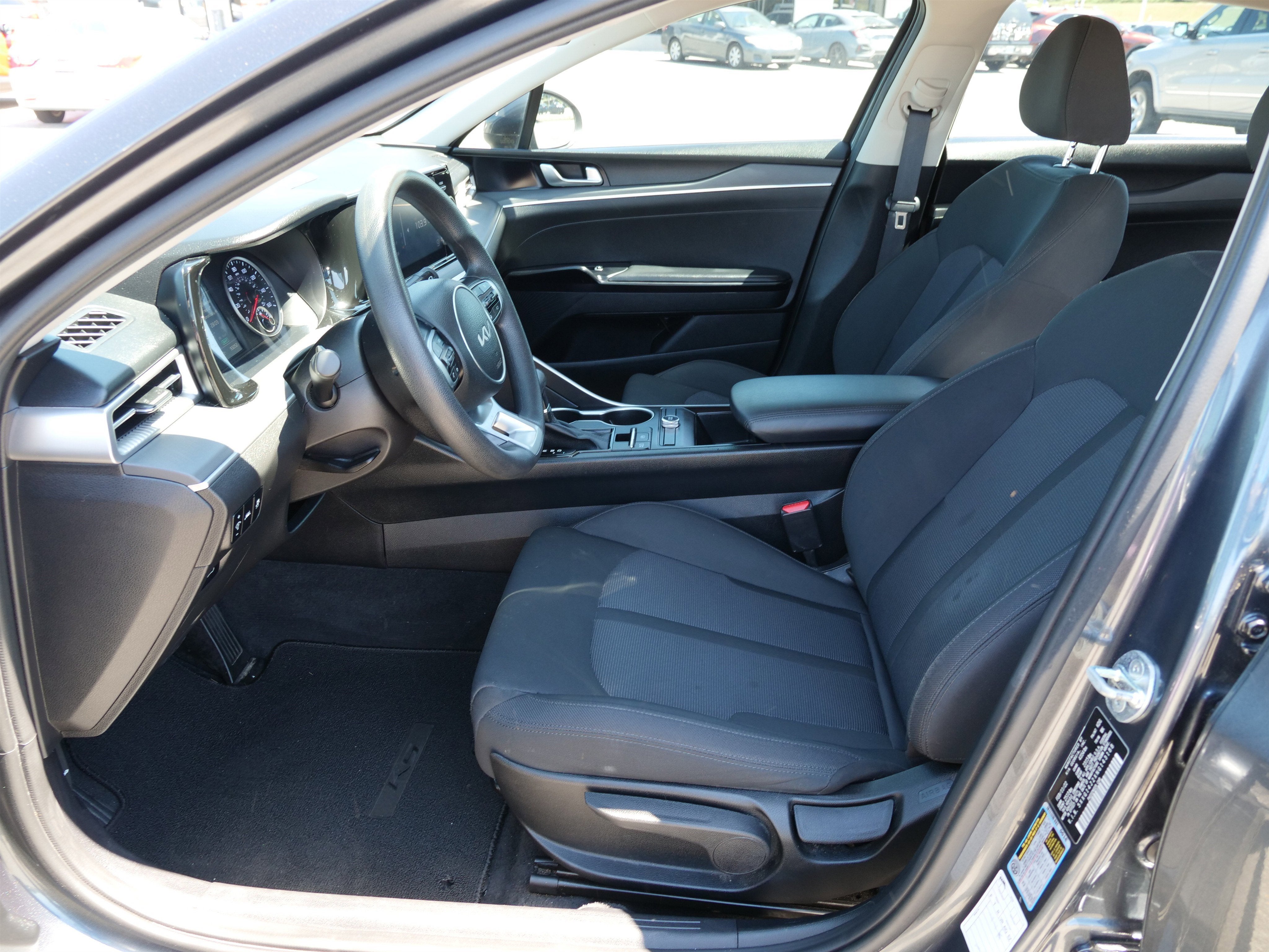 New Price! Gravity Gray 2022 Kia K5 LXS FWD 8-Speed Automatic I4 4-Wheel Disc Brakes, 6 Speakers, ABS brakes, Air Conditioning, Alloy wheels, AM/FM radio, Auto High-beam Headlights, Automatic temperature control, Brake assist, Bumpers: body-color, Carpeted Floor Mats, Cloth Seat Trim, Delay-off headlights, Driver door bin, Driver vanity mirror, Dual front impact airbags, Dual front side impact airbags, Electronic Stability Control, Four wheel independent suspension, Front anti-roll bar, Front Bucket Seats, Front Center Armrest, Front dual zone A/C, Front reading lights, Fully automatic headlights, Heated door mirrors, Illuminated entry, Knee airbag, Low tire pressure warning, Occupant sensing airbag, Outside temperature display, Overhead airbag, Overhead console, Panic alarm, Passenger door bin, Passenger vanity mirror, Power door mirrors, Power steering, Power windows, Radio data system, Radio: AM/FM/MP3 Audio System, Rear anti-roll bar, Rear seat center armrest, Rear side impact airbag, Rear window defroster, Remote keyless entry, Security system, Speed control, Speed-sensing steering, Split folding rear seat, Steering wheel mounted audio controls, Tachometer, Telescoping steering wheel, Tilt steering wheel, Traction control, Trip computer, Variably intermittent wipers, and Wheels: 6.5J x 16 Gray Alloy.