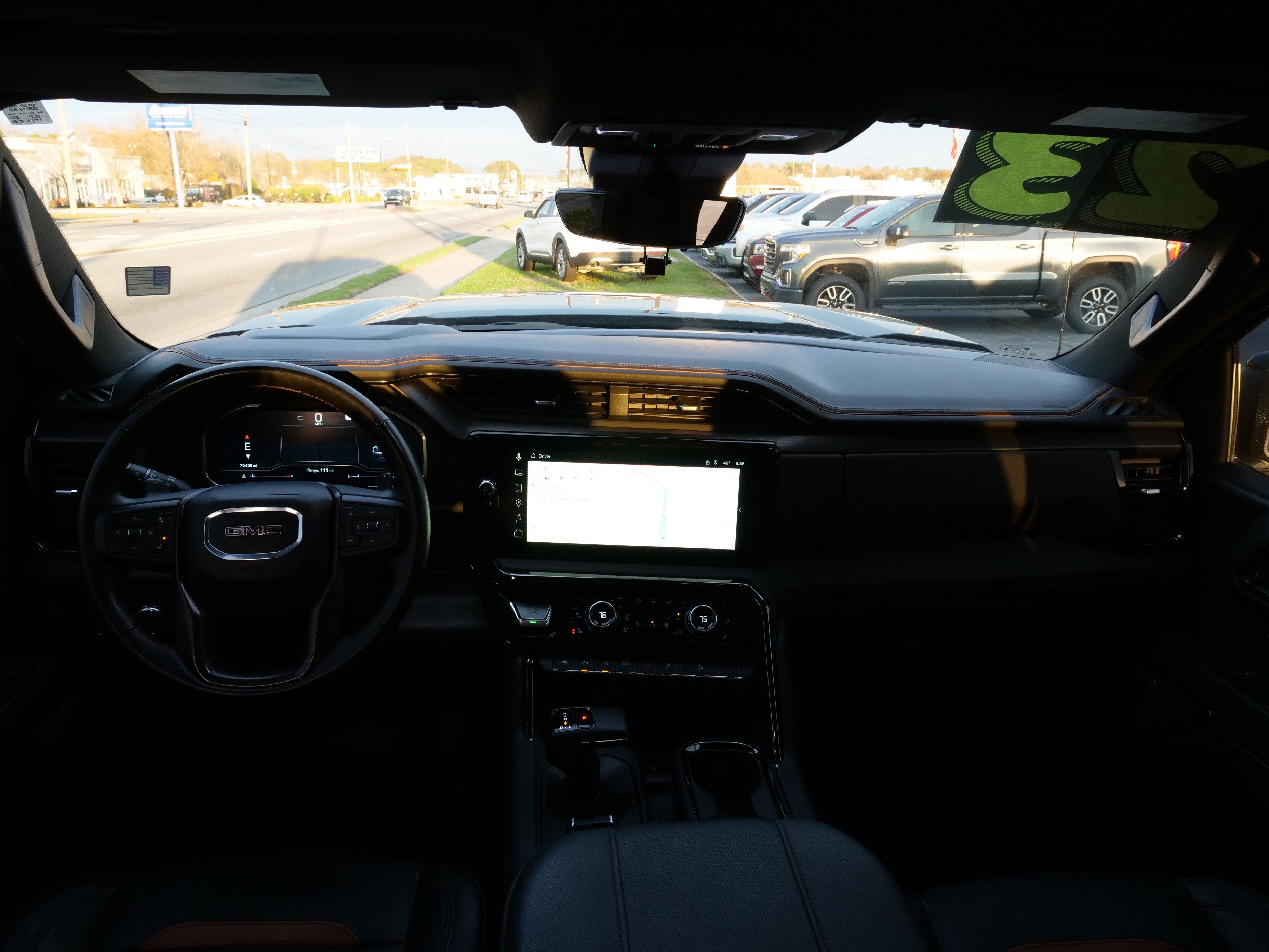 CARFAX One-Owner. Onyx Black 2023 GMC Sierra 1500 AT4 4WD 10-Speed Automatic 3.0L I6 AT4 Preferred Package (Adaptive Cruise Control, Power Sliding Rear Window w/Rear Defogger, and Universal Home Remote), AT4 Premium Package (Off-Road High Clearance Step (LPO)), Preferred Equipment Group 4SB (120-Volt Bed Mounted Power Outlet, 120-Volt Instrument Panel Power Outlet, 2 Charge/Data USB Ports Inside Center Console, 2 Type-C Charge-Only Rear USB Ports, 2 USB Ports, 220 Amp Alternator, Auto-Locking Rear Differential, Black Chrome Header & Grille Insert Bars, Color-Keyed Carpeting Floor Covering, Compass, Deep-Tinted Glass, Electric Rear-Window Defogger, Electrical Steering Column Lock, Floor-Mounted Center Console, Front Prem Floor Liners w/Removable Carpet Insert, Front Rainsensing Wipers, GMC Connected Access Capable, HD Surround Vision, Heated 2nd Row Outboard Seats, Heated Driver & Front Outboard Passenger Seating, Heavy-Duty Air Filter, Hill Descent Control, Hitch Guidance w/Hitch View, In-Vehicle Trailering App, Integrated Trailer Brake Controller, Keyless Open & Start, LED Cargo Area Lighting, OnStar & GMC Connected Services Capable, Perimeter Lighting, Power Door Locks, Power Front Passenger Windows w/Express Up/Down, Power Front Windows w/Driver Express Up/Down, Power Rake & Telescoping Steering Column, Power Rear Windows w/Express Down, Premium Bose 7-Speaker Sound System, Push Button Start, Rear Cross Traffic Braking, Rear Pedestrian Detection, Rear Prem Floor Liners w/Removable Carpet Insert, Rear Wheelhouse Liners, Red Recovery Hooks, Remote Vehicle Starter System, SiriusXM w/360L, Spray-On Pickup Bed Liner w/AT4 Logo, Steering Wheel Audio Controls, Theft Deterrent System (Unauthorized Entry), Trailer Camera Provisions, Trailer Side Blind Zone Alert, Ultrasonic Front & Rear Park Assist, Ventilated Driver & Front Passenger Seats, Wi-Fi Hotspot Capable, Wireless Charging, and Wireless Phone Projection), Technology Package (Bed View Camera, Multicolor 15 Diagonal Head-Up Display, and Rear Camera Mirror), Trailering Package (Hitch Guidance), 10-Speed Automatic, 4WD, Jet Black With Kalahari Accents Leather, 10-Way Power Driver Seat Adjuster w/Lumbar, 10-Way Power Passenger Seat Adjuster w/Lumbar, 18 x 8.5 Machined Aluminum Wheels, 3.23 Rear Axle Ratio, 4-Wheel Disc Brakes, 7 Speakers, ABS brakes, Air Conditioning, Alloy wheels, AM/FM radio, Apple CarPlay/Android Auto, Auto High-beam Headlights, Auto-dimming door mirrors, Auto-dimming Rear-View mirror, Automatic Emergency Braking, Automatic temperature control, Block heater, Brake assist, Buckle to Drive, Bumpers: body-color, Delay-off headlights, Driver door bin, Driver Memory, Driver vanity mirror, Dual front impact airbags, Dual front side impact airbags, Electronic Stability Control, Emergency communication system: OnStar and GMC connected services capable, Engine Block Heater, Following Distance Indicator, Forward Collision Alert, Front anti-roll bar, Front Bucket Seats, Front Center Armrest, Front dual zone A/C, Front fog lights, Front Pedestrian Braking, Front reading lights, Front wheel independent suspension, Fully automatic headlights, Heated door mirrors, Heated front seats, Heated rear seats, Heated steering wheel, Illuminated entry, IntelliBeam Automatic High Beam On/Off, Lane Keep Assist w/Lane Departure Warning, Low tire pressure warning, Memory seat, Navigation System, Not Equipped w/Steering Column Lock, Occupant sensing airbag, Off-Road Suspension, Outside temperature display, Overhead airbag, Overhead console, Panic alarm, Passenger door bin, Passenger vanity mirror, Perforated Front Leather Seat Trim, Power door mirrors, Power driver seat, Power passenger seat, Power steering, Power Sunroof, Power windows, Premium audio system: GMC Infotainment System, Radio data system, Radio: Premium GMC Infotainment Audio System, Rain sensing wipers, Rear reading lights, Rear seat center armrest, Rear step bumper, Rear w