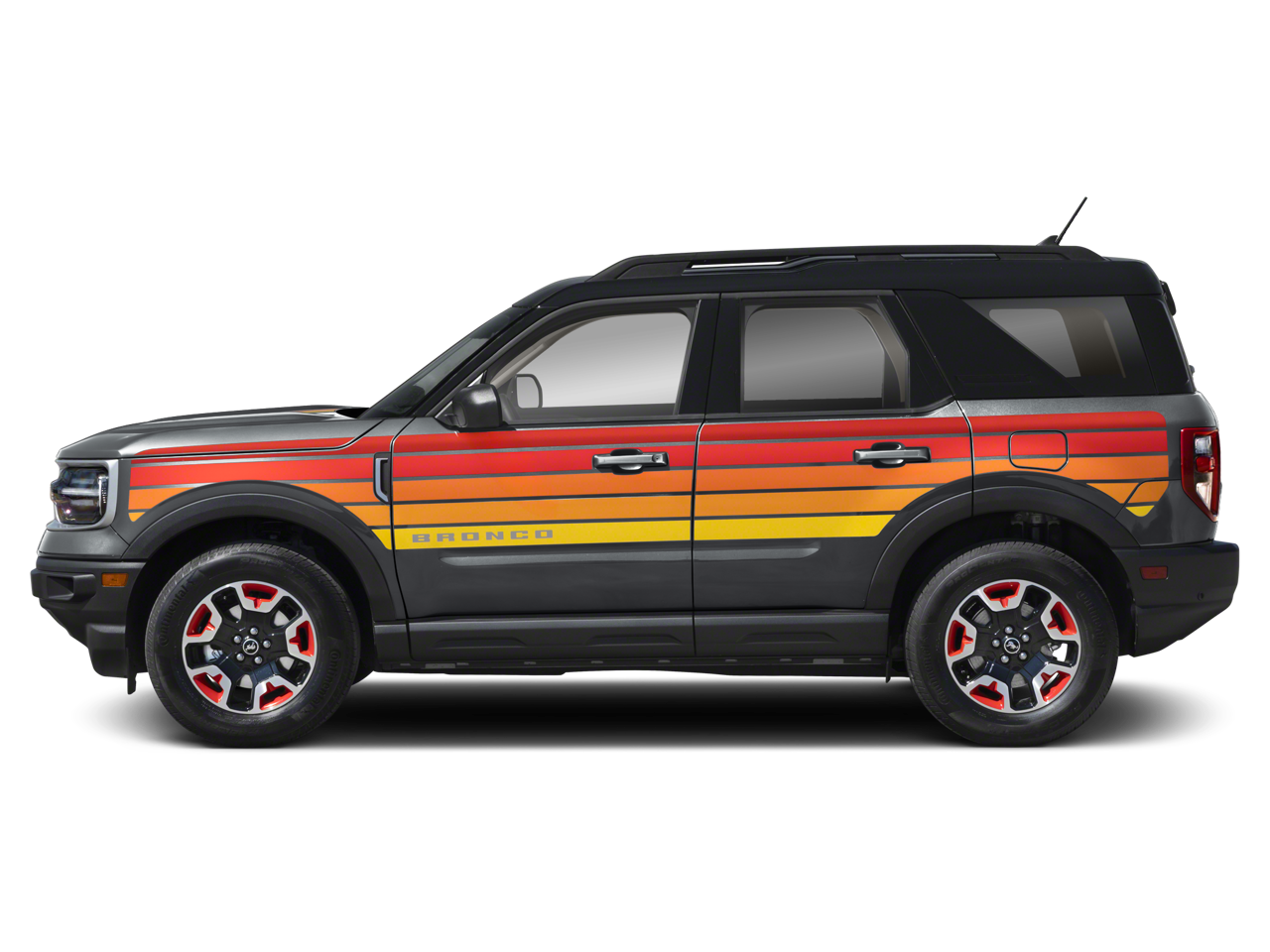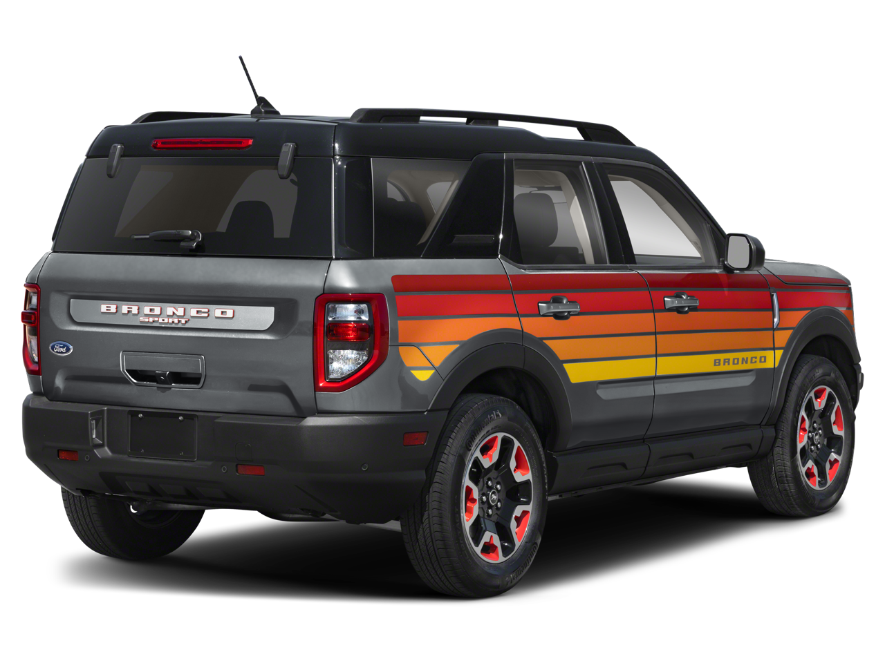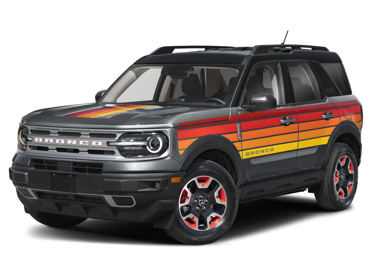Gray Metallic 2024 Ford Bronco Sport Free Wheeling 4WD 8-Speed Automatic 1.5L EcoBoost Convenience Package (Front Driver/Passenger Seat Back Map Pockets, Heated Front Bucket Seats, LED Fog Lamps, Premium Wrapped Steering Wheel, Rear Parking Sensors, Universal Garage Door Opener (UGDO), and Wireless Charging Pad), Equipment Group 220A, Ford Co-Pilot360 Assist+ (Evasive Steering Assist, Intelligent Adaptive Cruise Control w/Stop & Go, and Voice-Activated Touchscreen Navigation System), 3.80 Axle Ratio, 4-Wheel Disc Brakes, 6 Speakers, ABS brakes, Air Conditioning, Alloy wheels, AM/FM radio: SiriusXM, AM/FM Stereo, Auto High-beam Headlights, Automatic temperature control, Brake assist, Compass, Delay-off headlights, Driver door bin, Driver vanity mirror, Dual front impact airbags, Dual front side impact airbags, Electronic Stability Control, Emergency communication system: SYNC 3 911 Assist, Four wheel independent suspension, Front anti-roll bar, Front Bucket Seats, Front Center Armrest, Front License Plate Bracket, Front reading lights, Fully automatic headlights, Heated door mirrors, Illuminated entry, Knee airbag, Low tire pressure warning, Occupant sensing airbag, Outside temperature display, Overhead airbag, Overhead console, Panic alarm, Passenger door bin, Passenger vanity mirror, Power door mirrors, Power steering, Power windows, Radio data system, Rear anti-roll bar, Rear reading lights, Rear seat center armrest, Rear window defroster, Rear window wiper, Remote keyless entry, Security system, SiriusXM, Speed control, Speed-sensing steering, Speed-Sensitive Wipers, Split folding rear seat, Steering wheel mounted audio controls, Sunset Weave Cloth Front Bucket Seats, SYNC 3 Communications & Entertainment System, Tachometer, Telescoping steering wheel, Tilt steering wheel, Traction control, Trip computer, Variably intermittent wipers, and Wheels: 17 Ebony Race Red-Painted.Odometer is 9364 miles below market average! 25/29 City/Highway MPG
