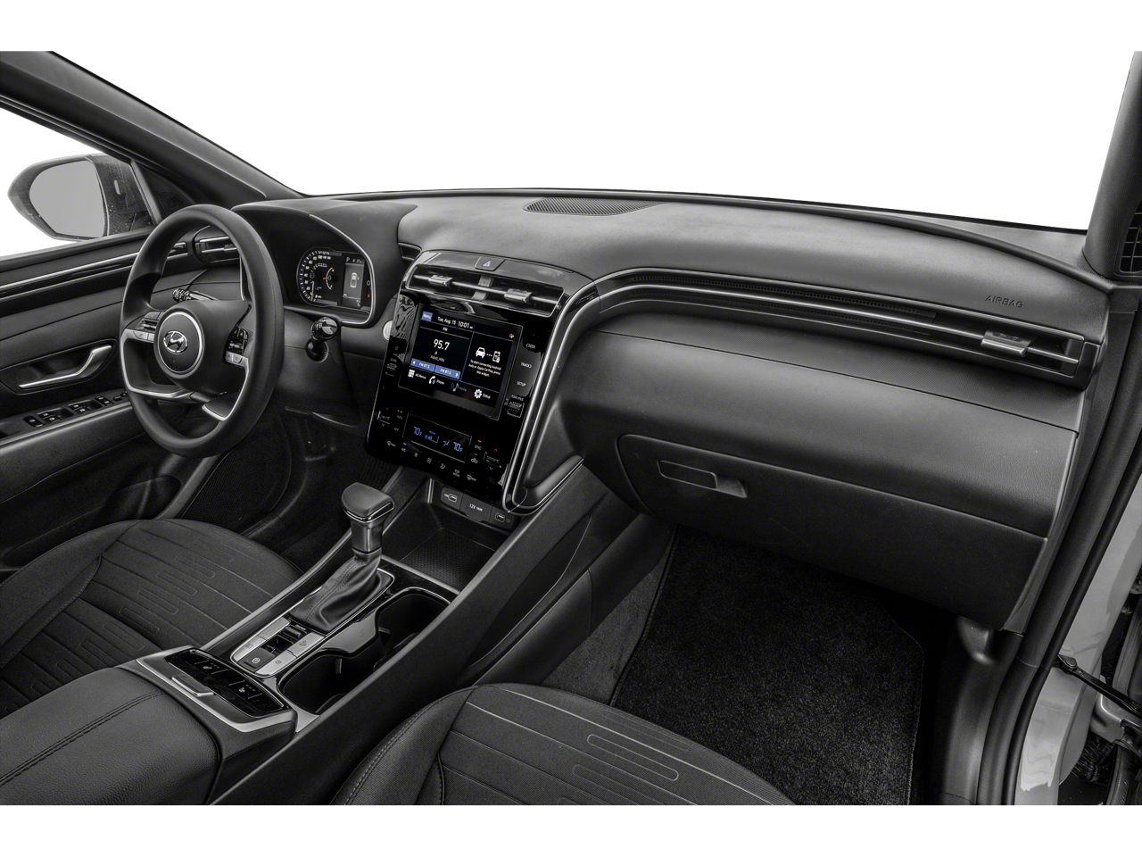 Phantom Black 2024 Hyundai Santa Cruz SEL AWD 2.5L I4 8-Speed Automatic with SHIFTRONIC Activity Package (10.25 Digital Instrument Cluster, 115V AC Power Inverter in Bed, 15W Wireless Phone, Conventional Power Sunroof, Dual C-Channel Utility Tracks on Bed Side, Integrated Tonneau Cover, LED Bed Lighting, LED Front & Rear Interior Lights, Option Group 02, Radio: AM/FM/HD Audio System (P2), Rear Sliding Glass Window w/Defroster, and Roof Side Rails), 18 x 7.5J Alloy Wheels, 4-Wheel Disc Brakes, 4.081 Axle Ratio, 6 Speakers, ABS brakes, Air Conditioning, Alloy wheels, AM/FM radio: SiriusXM, Apple CarPlay & Android Auto, Auto High-beam Headlights, Auto-leveling suspension, Automatic temperature control, Bed Cargo Net, Bed Fence, Brake assist, Bumpers: body-color, Carpeted Floor Mats, Delay-off headlights, Driver door bin, Driver vanity mirror, Dual front impact airbags, Dual front side impact airbags, Electronic Stability Control, Emergency communication system: Bluelink+, Envelope Cargo Net, Exterior Parking Camera Rear, First Aid Kit, Four wheel independent suspension, Front anti-roll bar, Front Bucket Seats, Front Center Armrest, Front dual zone A/C, Front reading lights, Fully automatic headlights, Heated door mirrors, Heated Front Bucket Seats, Heated front seats, Illuminated entry, Low tire pressure warning, Occupant sensing airbag, Outside temperature display, Overhead airbag, Overhead console, Panic alarm, Passenger door bin, Passenger vanity mirror, Power door mirrors, Power driver seat, Power steering, Power windows, Radio data system, Radio: AM/FM/HD Audio System, Rear anti-roll bar, Rear side impact airbag, Rear step bumper, Rear window defroster, Remote keyless entry, Security system, Speed control, Speed-sensing steering, Split folding rear seat, Spoiler, Stain & Odor Resistant Cloth Seat Trim, Steering wheel mounted audio controls, Tachometer, Telescoping steering wheel, Tilt steering wheel, Traction control, Trip computer, Turn signal indicator mirrors, and Variably intermittent wipers.21/25 City/Highway MPG