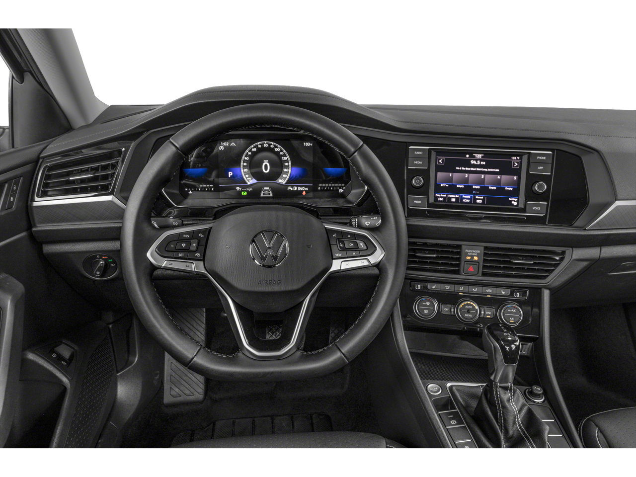 Gray 2024 Volkswagen Jetta 1.5T SE 1.5L I-4 DI DOHC Turbocharged 8-Speed Automatic with Tiptronic FWD Titan Black w/V-Tex Leatherette Seat Trim, 4 Speakers, 4-Wheel Disc Brakes, ABS brakes, Active Blind Spot Monitor, Air Conditioning, Alloy wheels, Auto-dimming Rear-View mirror, Automatic temperature control, Brake assist, Bumpers: body-color, Delay-off headlights, Driver door bin, Driver vanity mirror, Dual front impact airbags, Dual front side impact airbags, Electronic Stability Control, Emergency communication system: VW Car-Net Safe & Secure 5-year, Exterior Parking Camera Rear, Front anti-roll bar, Front Bucket Seats, Front Center Armrest, Front dual zone A/C, Front wheel independent suspension, Fully automatic headlights, Heated door mirrors, Heated Front Seats, Heated front seats, Illuminated entry, Leather Shift Knob, Leather steering wheel, Low tire pressure warning, Occupant sensing airbag, Outside temperature display, Overhead airbag, Overhead console, Panic alarm, Passenger door bin, Passenger vanity mirror, Power door mirrors, Power driver seat, Power steering, Power windows, Radio data system, Radio: MIB3 Composition Color w/6.5 Touchscreen, Rain sensing wipers, Rear anti-roll bar, Rear reading lights, Rear seat center armrest, Rear window defroster, Remote keyless entry, Speed control, Speed-sensing steering, Split folding rear seat, Steering wheel mounted audio controls, Tachometer, Telescoping steering wheel, Tilt steering wheel, Traction control, Trip computer, V-Tex Leatherette Seat Trim, Variably intermittent wipers, and Wheels: 17 Twin 5-Spoke Silver Painted Alloy.29/40 City/Highway MPGDeacon Jones has been PROUDLY Providing only the BEST Pre-Owned Vehicles from Goldsboro to Eastern North Carolina Communities Including Raleigh, Greenville, Wilson, Wilmington and Beyond for over 40 YEARS!